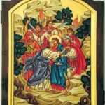 L’otto del mese di Agosto del 1996 la nostra chiesa, a causa di un furto, veniva privata della sua Via Crucis datata all’inizio del secolo (circa 1903): non era di grande valore artistico, ma era lì da sempre ed era parte importante della struttura e dei percorsi di preghiera. Abbiamo così cominciato a pensare a come sostituirla e siamo intanto venuti in contatto con la Comunità di Suor Elvira di Saluzzo, nella quale c’erano alcuni giovani passati di lì e ormai insegnanti per altri giovani che avevano imparato la tecnica bizantina delle icone dopo un anno di scuola intensiva da parte di una suora di Betlemme.